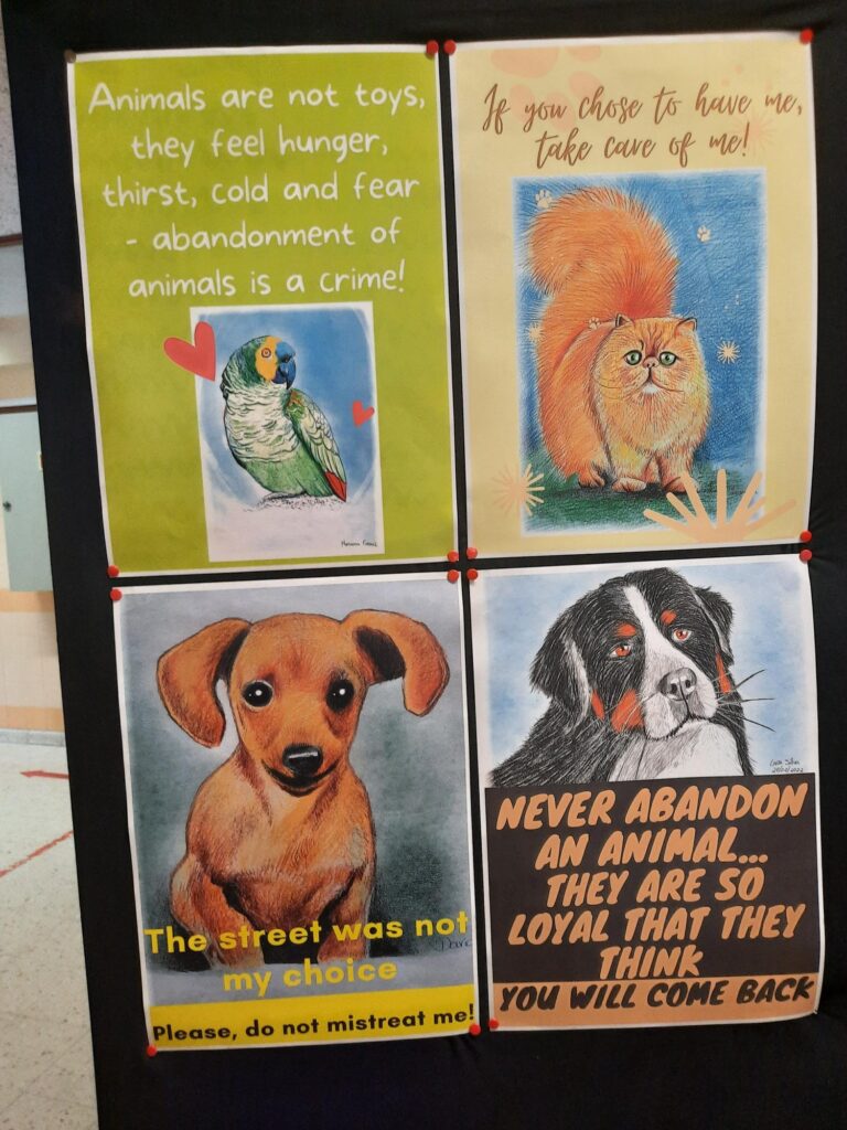 Depois de uma longa caminhada, que passou pela seleção, por cada aluno, de uma raça de um animal de estimação, da respetiva pesquisa sobre as suas caraterísticas, taxonomia (…) e ilustração, o trabalho chegou ao fim com uma interessante exposição que pode ser visualizada no átrio da nossa Escola e uma visita à Animarco para, por um lado,  entregar o produto de uma campanha dinamizada junto da comunidade educativa, e, por outro, acarinhar estes seres vivos que foram aqui acolhidos, porque deixaram de ser “estimados”! Foi um momento intenso de partilha de afetos que ficará na memória e no coração de todos!