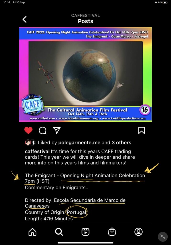 “O Emigrante” selecionado para o CAFFestival em Honolulu, Havai !
