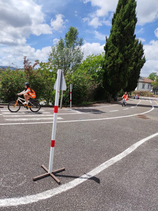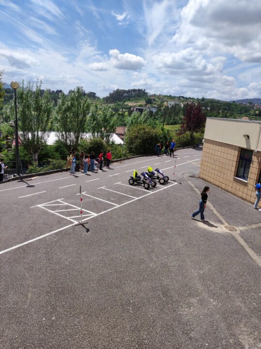 . pista rodoviária, onde testaram os seus conhecimentos pelas regras de trânsito, enquanto conduziam bicicletas e carros;